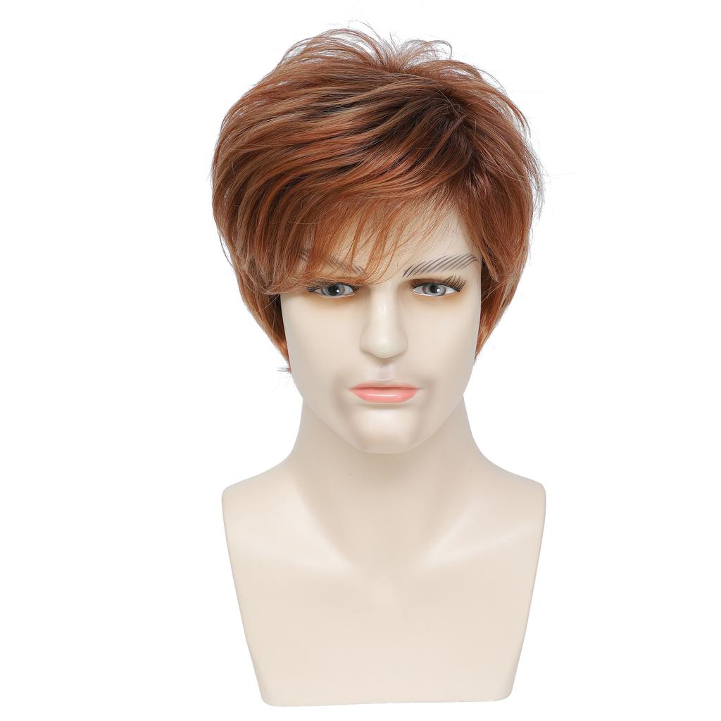 Ανδρικές Κοντές Φανταχτερές Περουκές με Κουρέματα Συνθετικές Μίξη Κόκκινες Καφέ για Καθημερινή Χρήση Cosplay Πάρτι Ανθεκτικές στη Θερμότητα Ίνες