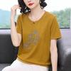 Pastel Embroidered Cotton Short Sleeve T-Shirt for Mid-Aged Women