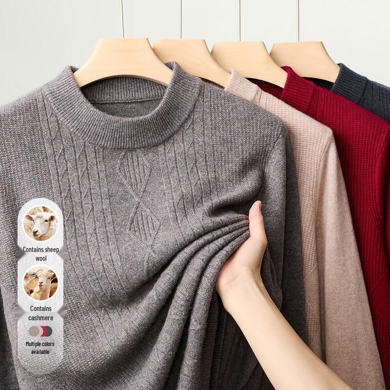 Men's Cashmere Blend Thick Cable Knit Pullover Sweater
