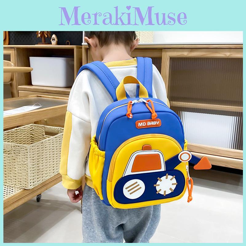 Kids Preschool Cartoon Backpack With Excavator Print And Breathable Material