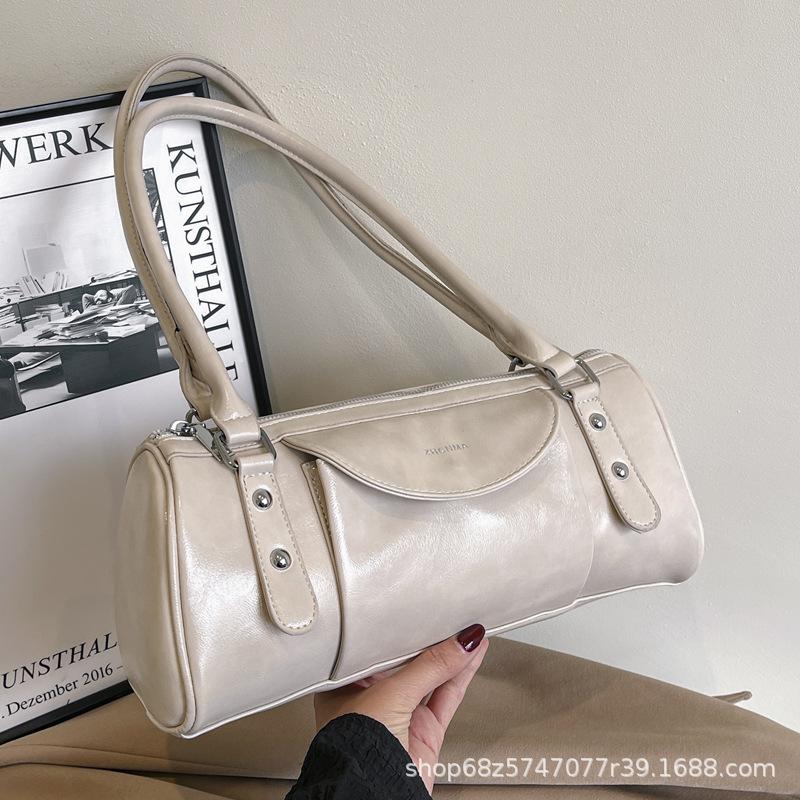 Retro high-end hand-held bowling bag women's 2025 new simple and fashionable shoulder bag versatile commuter messenger bag