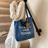 Retro Letter Denim Tote Bag - Large Capacity, Lazy Style Shoulder Bag