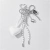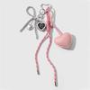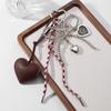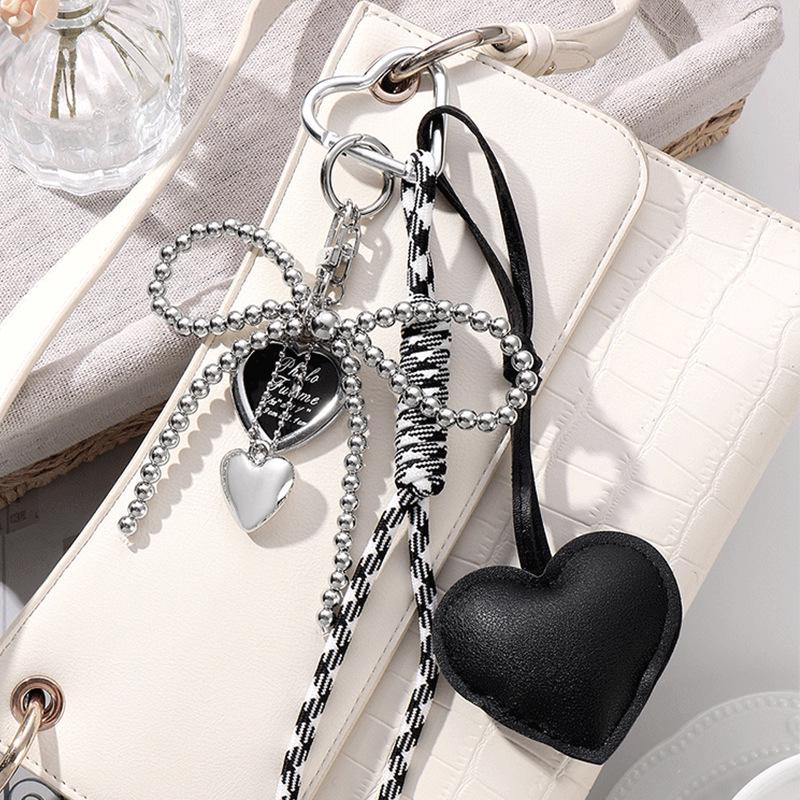 Heart-Shaped Leather Pendant Keychain with Bow and Silver Bead Charm