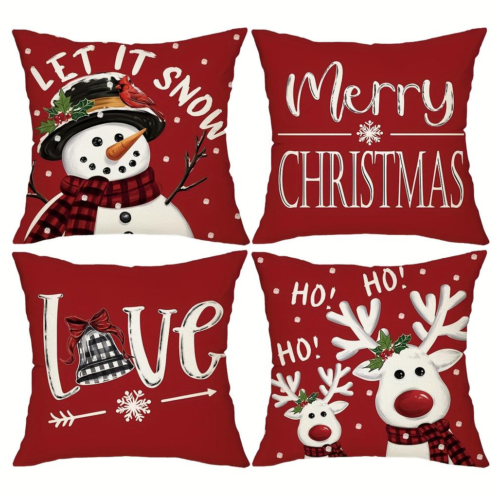 1pc Red Christmas Cushion Cover Snowman Deer Printed Durable Cover 2025 New for Home Ornament Xmas New Year Christmas Decoration