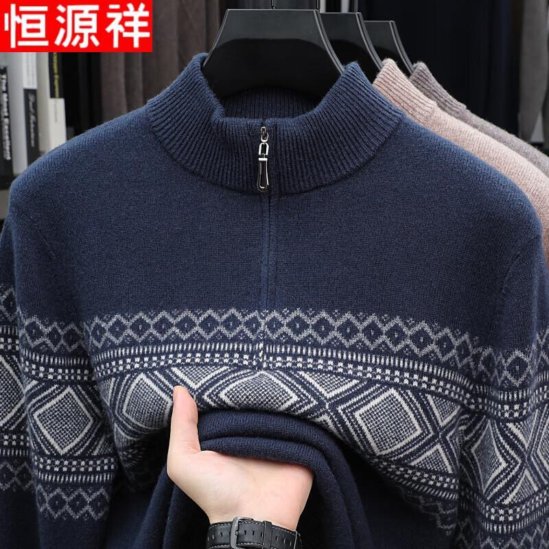 Hengyuanxiang Men's 100% Pure Wool Zipper Mock Neck Pullover Sweater