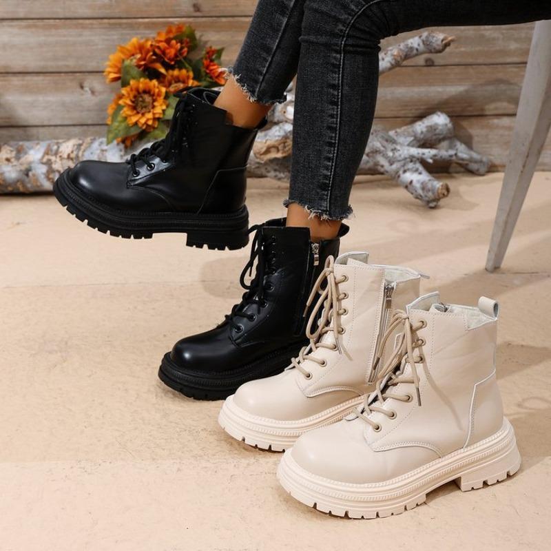 Plus Size Fall/Winter 2025 Women's Boots Martin Boots with Fleece Thick Soles and Lace-up Black Classic Booties for Women