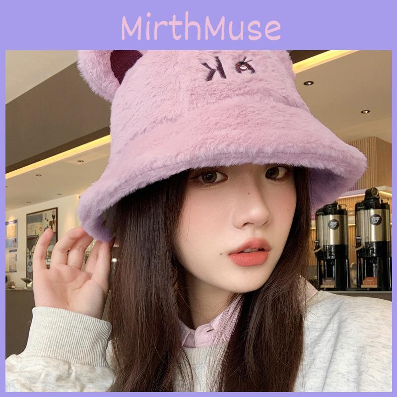 Bear Ok Ear Letter Embroidery Plush Fisherman Hat Bucket Cap Sun Protection