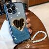 Πολυτελής Θήκη Τηλεφώνου με Καθρέφτη Αγάπης με Διαμάντια Για Xiaomi Redmi Note 14 13 Pro Plus 5G 4G 14S 14 13 Pro Κρεμαστό Σχοινί με Μαργαριταρένια Καρδιά