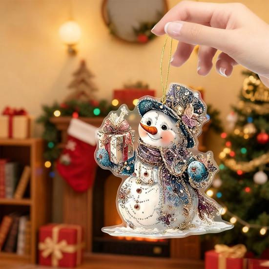 4Pcs/Set Snowman Pendant Christmas Cartoon Pink Snowman 2D Pendant Festive Indoor