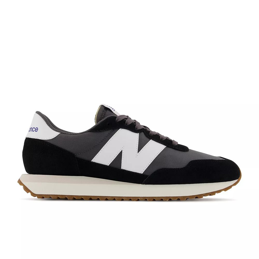 The 237 sneakers by New Balance are a modern reinterpretation of the 1970s running shoes. Combining classic inspirations with contemporary and versatile design, these sneakers feature an EVA midsole, chevron outsole, and aerodynamic upper. Highlights include an oversized N logo, elongated midsole, and alligator-inspired reinforcement and mudguard. Ideal for lifestyle use, these sneakers blend vintage charm with modern performance.