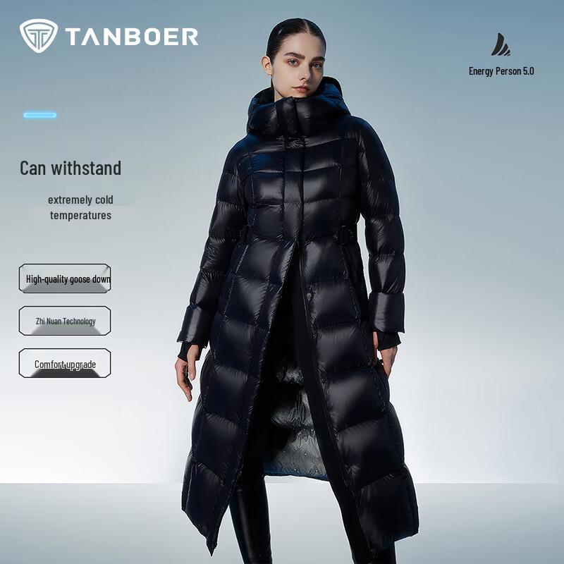Tanboer Women's Long Goose Down Hooded Puffer Jacket