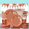 Disposable Rose Gold Bronzing Party Paper Plate Paper Cup Paper Towel Tablecloth Birthday Party Tableware Set