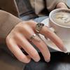 S925 Sterling Silver Graffiti Gingerbread Man & Bear Christmas Ring: Women's Retro Open Index Finger Style