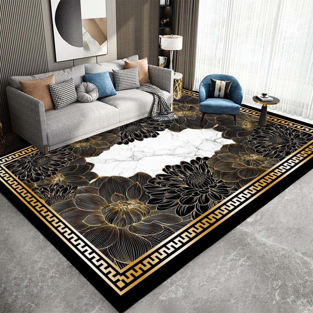 Black Gold Marble Area Rug Modern Abstract Geometric Rug Non-Slip Soft Floor Carpet Decor for Home Living Room Bedroom Office
