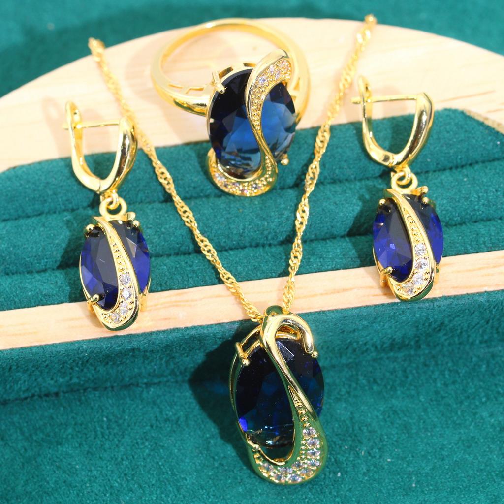 1. Σετ κοσμημάτων με πράσινο πετράδι: Αυτό το κόσμημα είναι φτιαγμένο από πλούσια πράσινα πετράδια ως κύρια πέτρα, σε συνδυασμό με λαμπερά σπασμένα διαμάντια, με εξαιρετικό σχήμα. Ο σχεδιασμός των κολιέ, των βραχιολιών, των δαχτυλιδιών και των σκουλαρικιών είναι συντονισμένος και ενιαίος, και ο φιόγκος είναι κομψός και ζωηρός, αναδεικνύοντας την αρχοντιά και την ομορφιά του, κάτι που είναι κατάλληλο για να προσθέσετε ανταύγειες σε επίσημες περιστάσεις.
