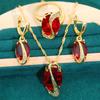 4. Σετ κοσμημάτων με κόκκινο πετράδι: Με έντονα κόκκινα πετράδια ως βασικό στοιχείο, σε συνδυασμό με εξαιρετικά σπασμένα διαμάντια. Κολιέ, βραχιόλια, δαχτυλίδια και σκουλαρίκια αντηχούν το ένα στο άλλο. Τα λουλούδια είναι εξαιρετικά σχεδιασμένα και γεμάτα ενθουσιασμό και ομορφιά. Είναι εντυπωσιακά αξεσουάρ για σημαντικές περιστάσεις, όπως δείπνα.