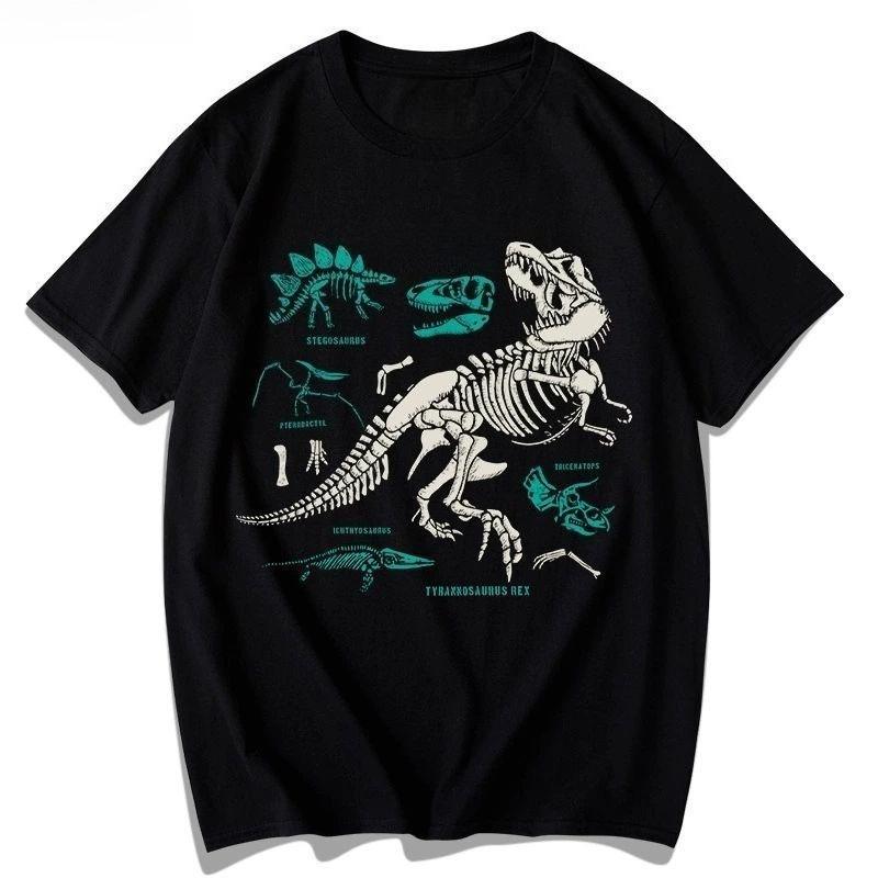 2025 Autumn Fashionable and Comfortable Cotton T-shirt Dinosaur Skeleton Printing Men's and Women's Plus Size Couple T-shirt