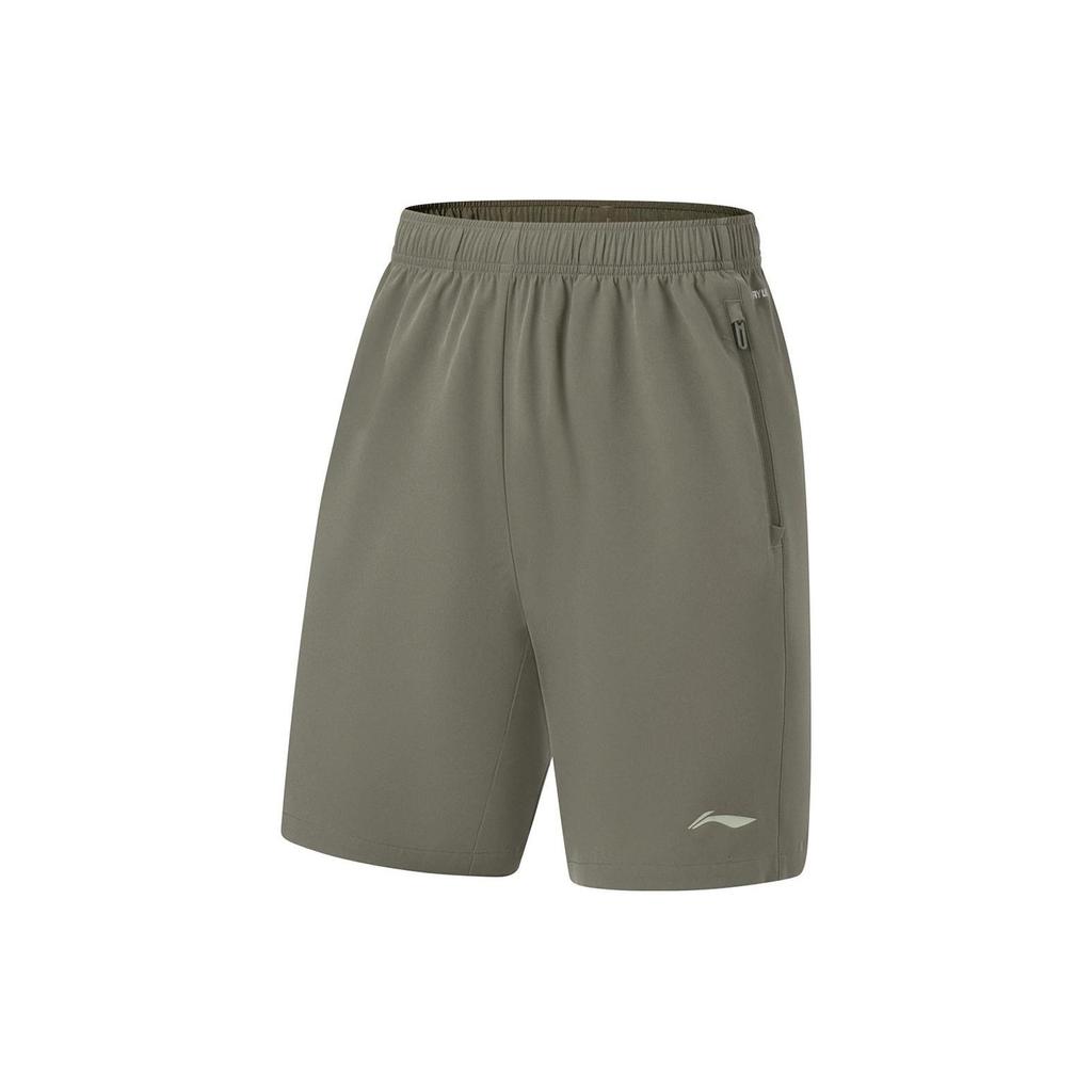 Li Ning Fitness Series Solid Color Logo Print Quick-Dry Sports Shorts Men shorts Military-Green AKST297-4