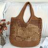 1pc Large Capacity Fashion Woven Tote Bag Hollowed Out Shoulder Bag Ultra-light,breathable and Spacious for Casual Summer Travel