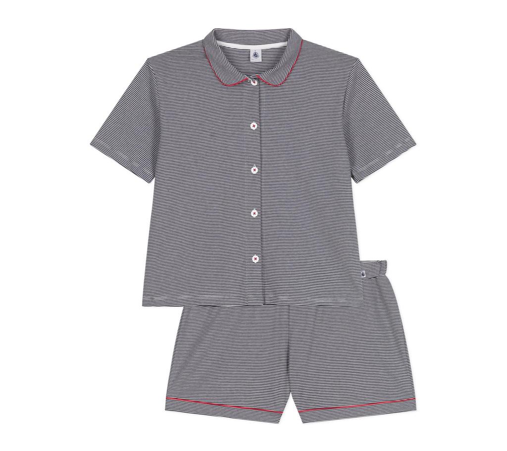 These short-sleeved pajamas feature the brand's signature ultra-fine Mirale striped pattern. Crafted from eco-friendly, stretchy 1x1 rib knit fabric, they're so soft it feels like a second skin, ensuring a comfortable feel. Piping accents add a touch of style. This is a recommended item for enjoying a comfortable and enjoyable time from relaxing at home to bedtime. Note: Dark colors may fade or transfer color when rubbed or washed. Wash separately with a mild detergent.