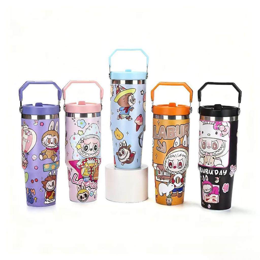 Κινούμενο σχέδιο 30oz Κύπελλο Αυτοκινήτου Εξωτερικού Χώρου 304 Ανοξείδωτος Θερμός Κύπελλο Μονό Ποτό Χειρολαβή Καλαμάκι Κύπελλο Bingba