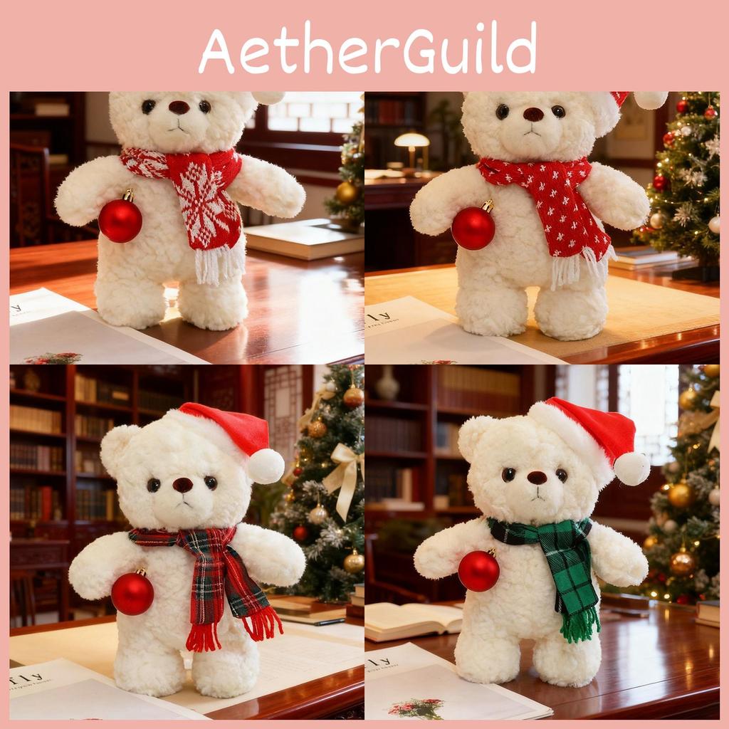 This plush teddy bear features a charming polar bear design, crafted from ultra-soft short pile plush fabric for a gentle touch, it is filled with breathable PP cotton for added comfort and durability. Its festive scarves in various patterns make it ideal for holiday decorations or gifts. Users can easily clean it by wiping with a damp cloth, ensuring long-lasting softness and appearance.