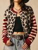 Μοντέρνα Vintage Παλτό με Λεοπάρ Σχέδιο Γυναικεία Ρούχα Αμερικάνικο Φαρδύ Φθινοπωρινά Casual Κοντά Μπουφάν με Όρθιο Γιακά, Φερμουάρ και Κουμπιά