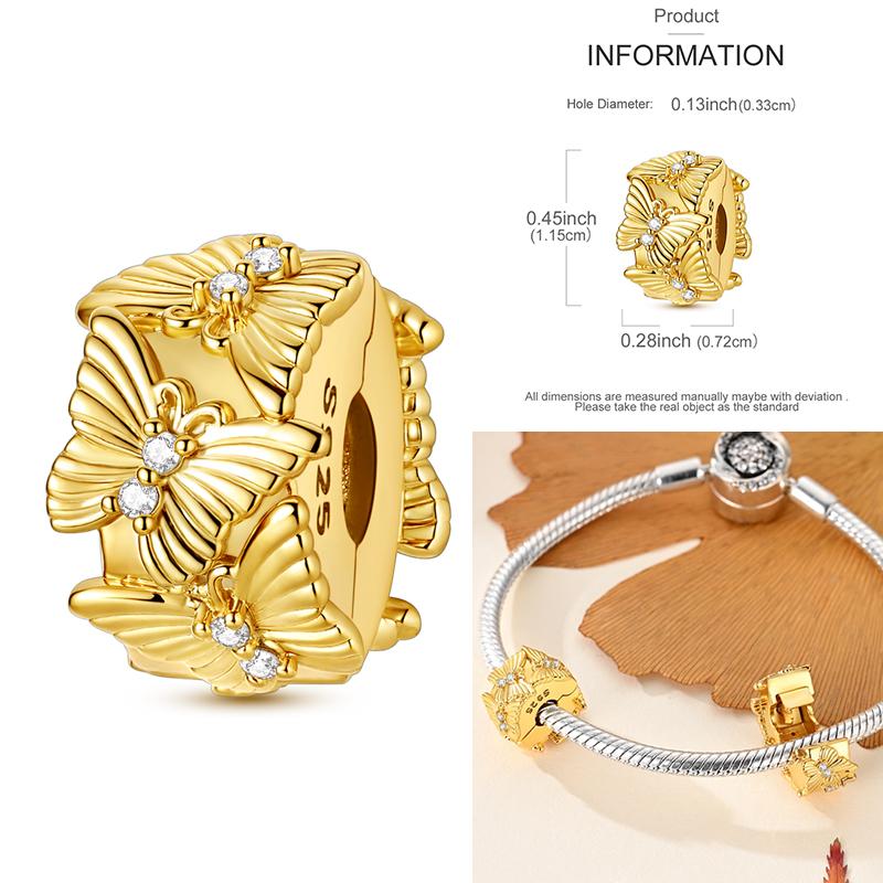 Golden Series Diy Clip Charms Beads Original Fine Copper Inlaid Sun Poodle Dog Bow Safety Chain Fit Bracelet Jewelry Marking