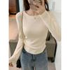 Women Fashion Pure Color Slim Lace Hollow Long Sleeve T-Shirt Soft and Comfortable Thin Loose Casual Tops