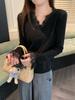 Black collar lace temperament long-sleeved bottoming shirt autumn and winter new lazy pullover with sweater knitted top women