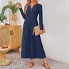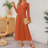 Women Solid-color Long-sleeved Comfortable Loose Dress, Elegant Dress