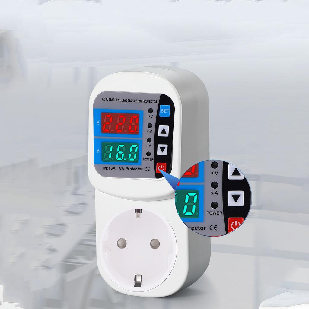 Surge Protector Outlet 16A Adjustable Digital Display Automatic Voltage Current Guard Socket for Home Voltage Regulator
