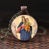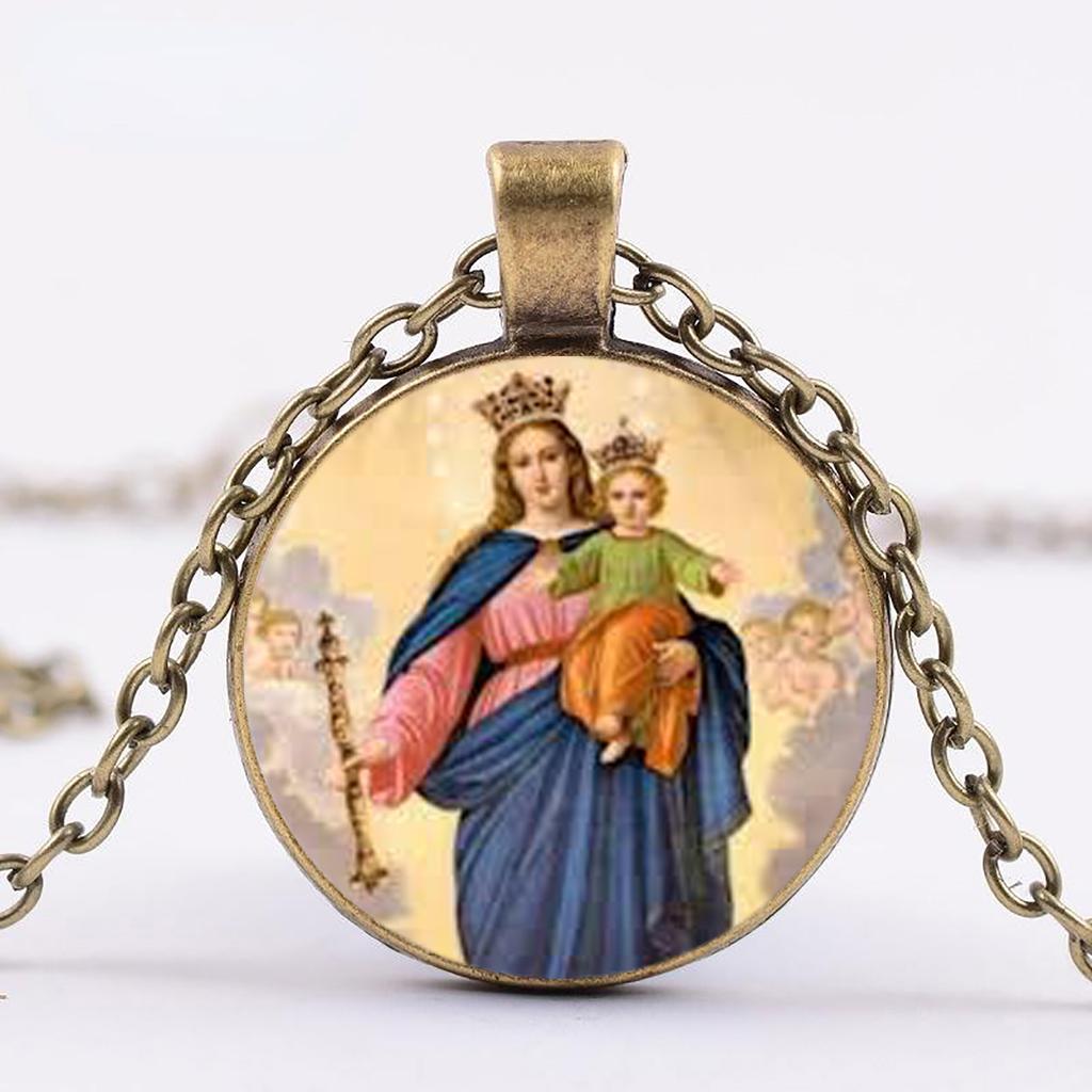 A Gemstone Pendant Featuring The Virgin Mary And The Infant Jesus, Suitable For Everyday Wear.