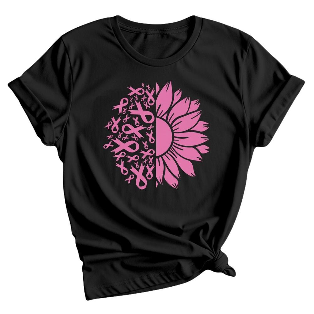 Breast Cancer Awareness Sunflower Ribbons Womens T-Shirt Cause Support