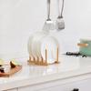 Freestanding Countertop Storage Cabinet, Small Bamboo Kitchen Pantry Sideboard with 2 Sliding Striped Glass Doors for Dish, Bowl