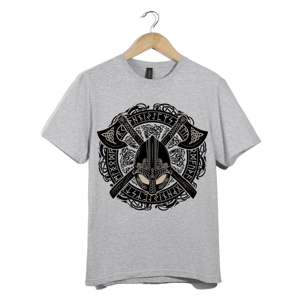 Viking Warrior Helmet TShirt Unisex Norse Rune Axes Nordic Mythology Graphic Tee