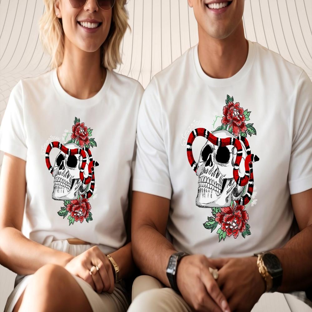 Gothic Punk T Shirt Unisex Skull Snake Rose Tee Streetwear Music Festival Gift