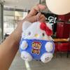 This Hello Kitty plush keyring features a soft, short-pile fabric filled with PP cotton, measuring approximately 11-15cm. Equipped with a durable plastic clip, it supports secure attachment to bags, keys, or backpacks. Ideal for kids and teens, it adds a playful touch to everyday accessories. Wipe with a damp cloth to clean.