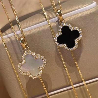 Διπλής Όψης Κολιέ Τετράφυλλο Τριφύλλι Πλήρως Διαμαντένιο Ευέλικτη Αλυσίδα Κλείδας Ελαφριά Πολυτέλεια Κοσμήματα Λευκού Φελλού για Γυναίκες