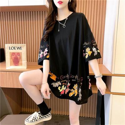 Summer Fashion Women Printed Shortsleeve Long Tshirt With Casual Round Neck For Comfortable Wear