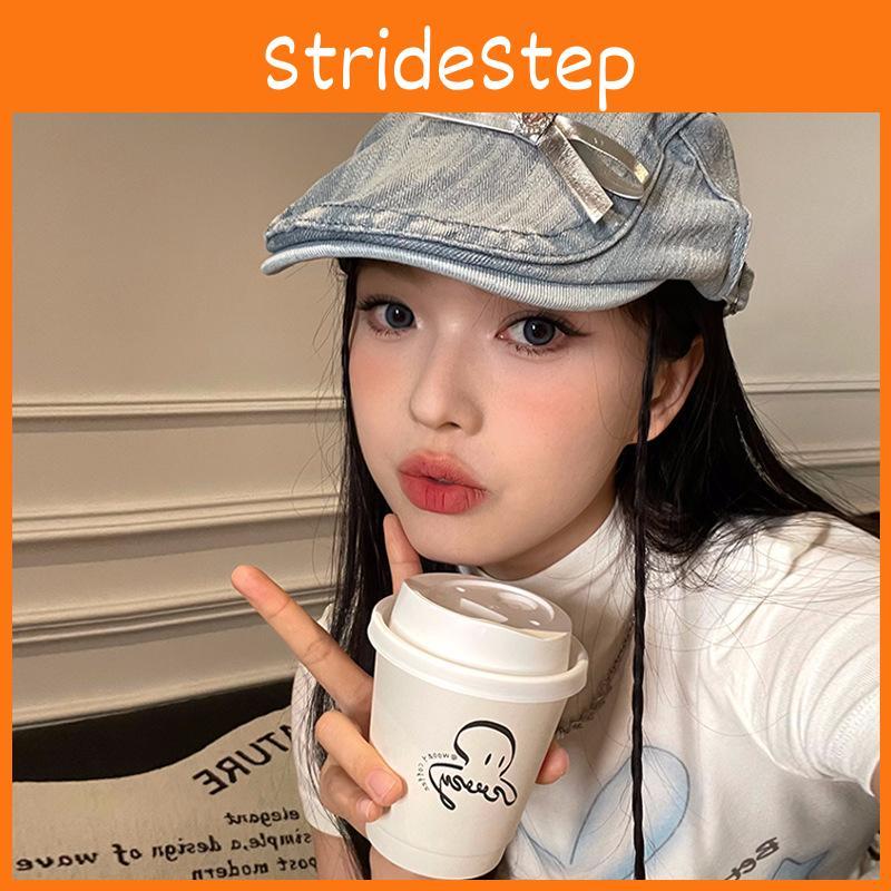 Original Design Diy Butterfly Knot Beret Hat For Women In Cool Y2k Vintage Denim Style