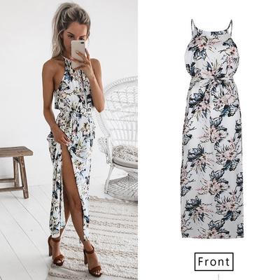 Fashion Summer Woman Γυναικείο φόρεμα με σέξι στάμπα μπροστινό σκίσιμο καπίστρι φιόγκο