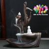 Gift 10Cones Ceramic Incense Censer Buddha Hand Backflow Incense Burner Lotus Incense Stick Holder