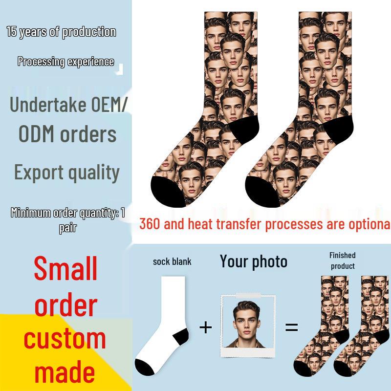 Custom 3D Logo Couple Mid-Calf Socks - Creative Autumn/Winter Trend, Personalized Design with Image
