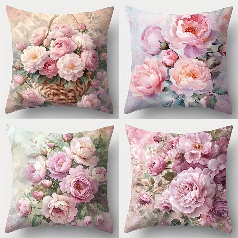 Διακόσμηση Σπιτιού Ροζ Παιώνιες Φλοράλ Μαξιλαροθήκη Για Άνετη Διακόσμηση Μοτίβο Κάλυμμα Μαξιλαριού Κατάλληλο Για Καναπέ Υπνοδωμάτιο Αυτοκίνητο Κάλυμμα Μαξιλαριού