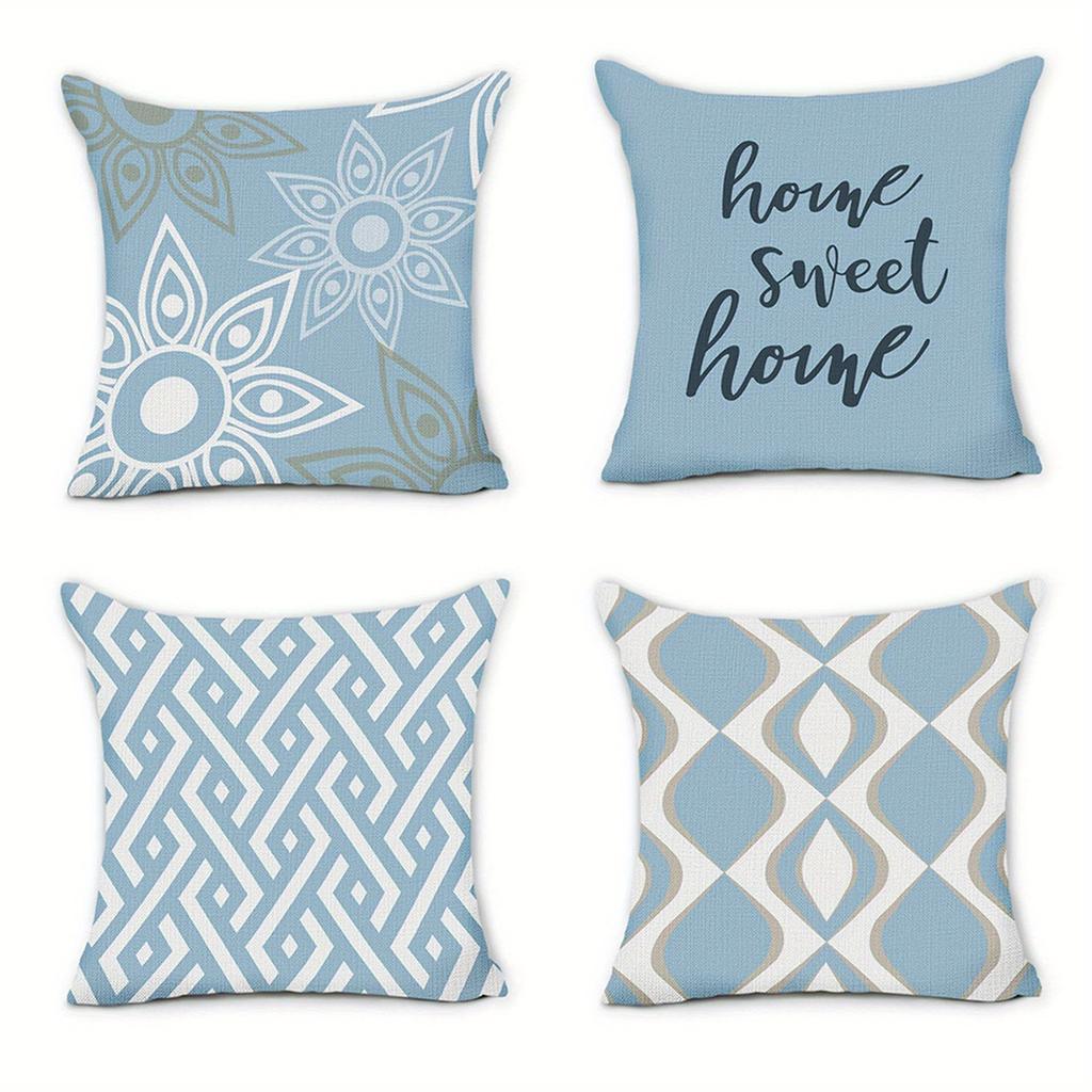 Home Decor Blue Geometric & Floral Home Sweet Home Pillows Pattern Cushion Cover Suitable For Sofa Bedroom Car Pillow Cover