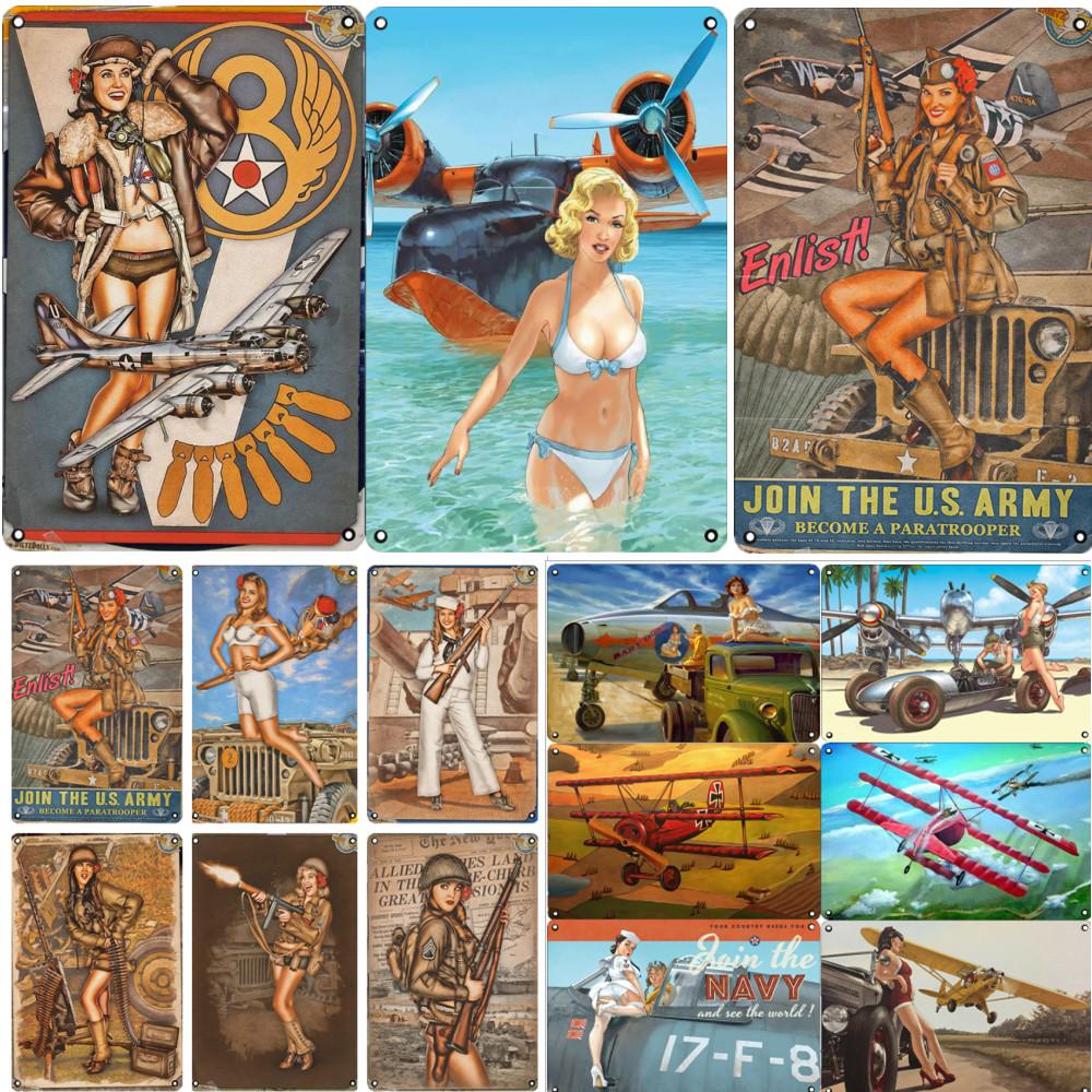 Vintage Classic Movie Tin Sign Retro Metal Plate Sexy Beauty Painting Wall Decor Airplane Plaque Pin Up Poster Room Decoration