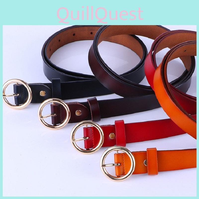 Fashionable Vintage Women's Leather Belt Made Of Genuine Cowhide With Round Buckle For Stylish Outfits And Everyday Wear