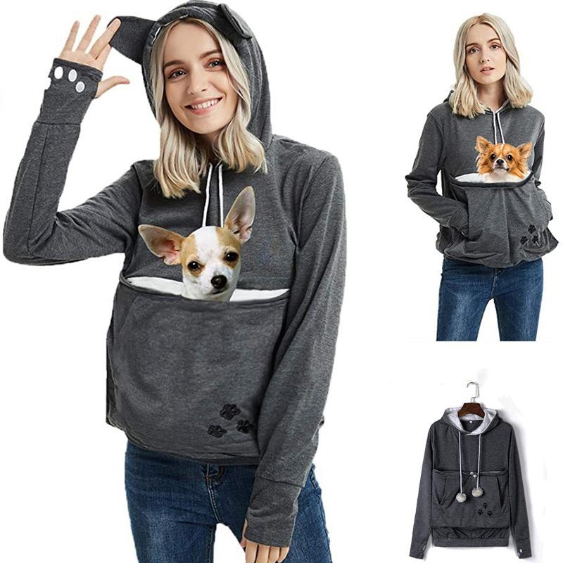Γυναικεία φούτερ με κουκούλα, μεγάλη θήκη, γυναικεία θήκη για κατοικίδια, φθινοπωρινή μόδα πουλόβερ, θήκη για αυτιά γάτας
