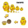 Each set includes ten intricately designed dolls, each fitting perfectly inside the other, ranging from the largest measuring 11*8.5cm/4.3*3.3 inches to the smallest at 0.6*0.35cm/0.2*0.1 inches.The vibrant colors and intricate details on each doll make them visually appealing and captivating.